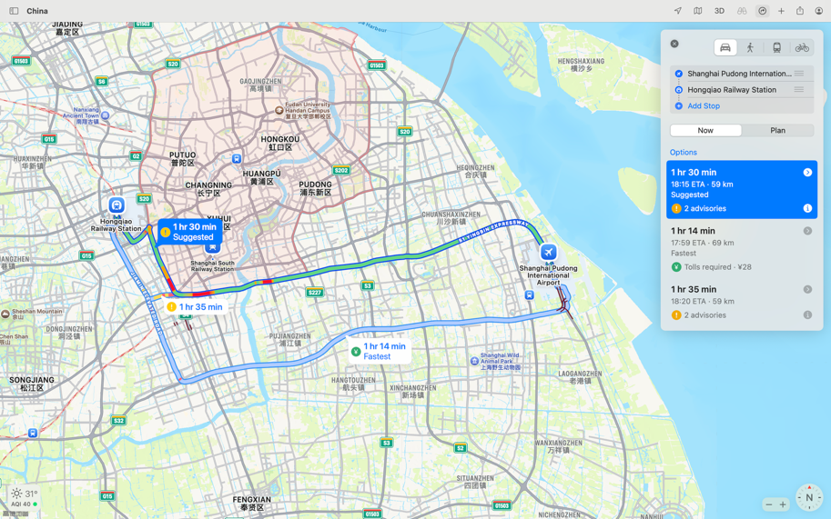 • Pudong Airport से Hongqiao railway station मेट्रो से जाने पर लगभग 52 मिनट लगते